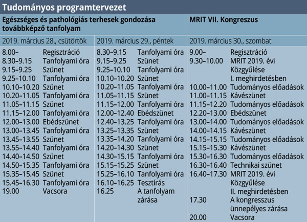 Tisztelettel meghívom Önöket a MRIT VII. Kongresszusára, valamint az Egészséges és pathológiás terhesek gondozása továbbképző tanfolyamra, amit 2019. március 28-30. között az ORFI Lukács épületében rendezünk. A tanfolyamot 32 kreditponttal vette lajstromba a Semmelweis Egyetem.